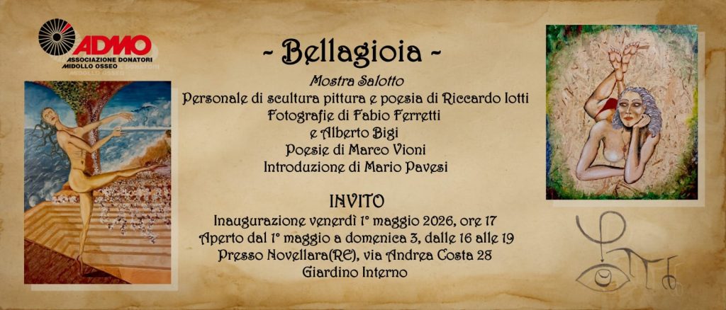 Dal 1° al 3 maggio 2026, il Giardino Interno di via Andrea Costa 28 a Novellara (RE) ospiterà un appuntamento imperdibile che intreccia creatività e impegno sociale: la personale di scultura, pittura e poesia dell’artista Riccardo Iotti, dal titolo “Bellagioia”.
