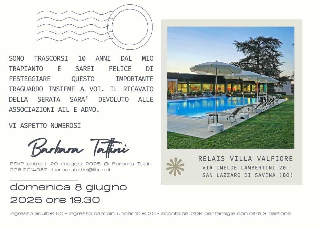 Sono trascorsi 20 anni dal mio trapianto e vorrei festeggiare questo traguardo con voi e sostenere ADMO