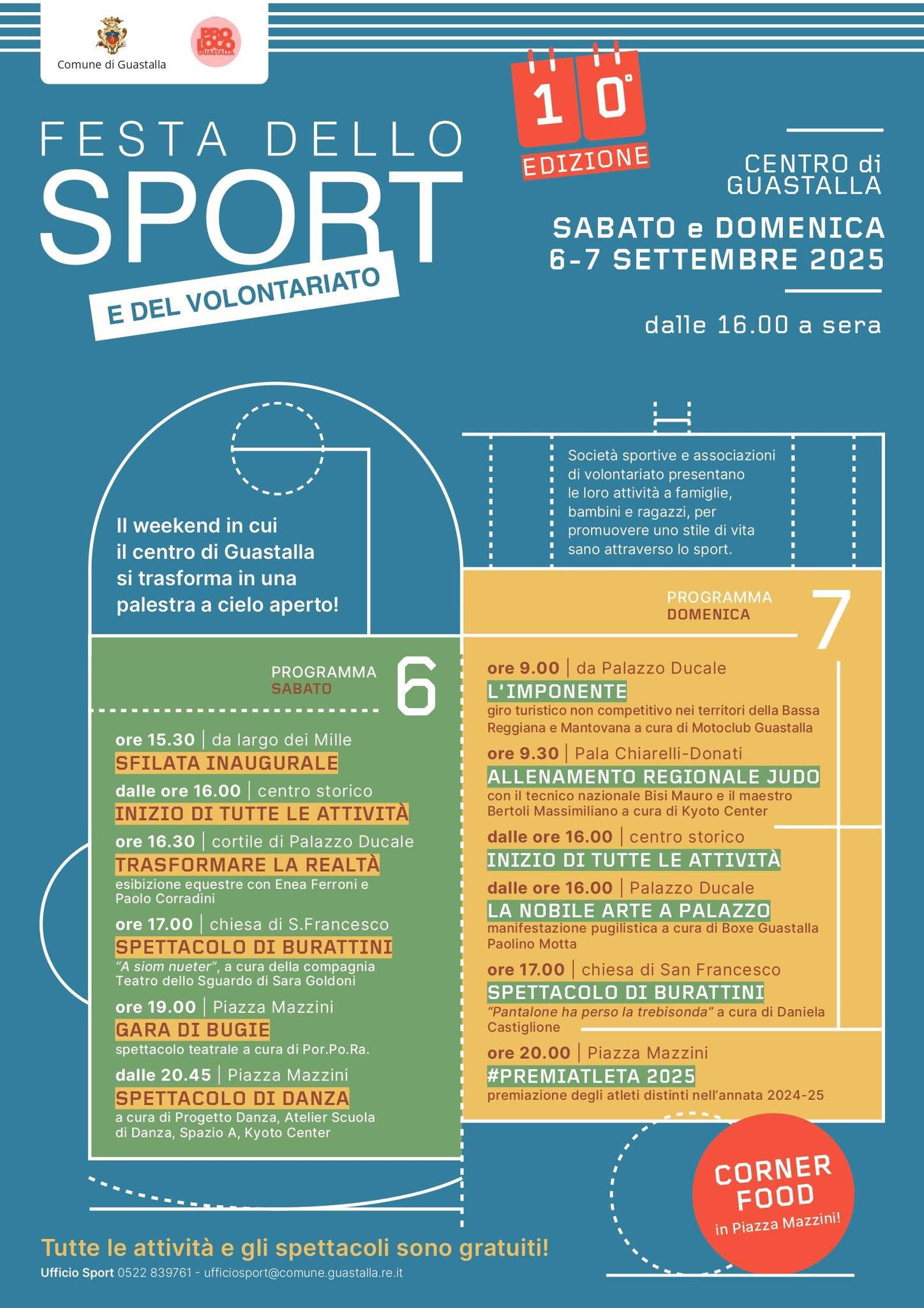 Sabato 6 e domenica 7 settembre torna la festa dello Sport e del Volontariato di Guastalla!
