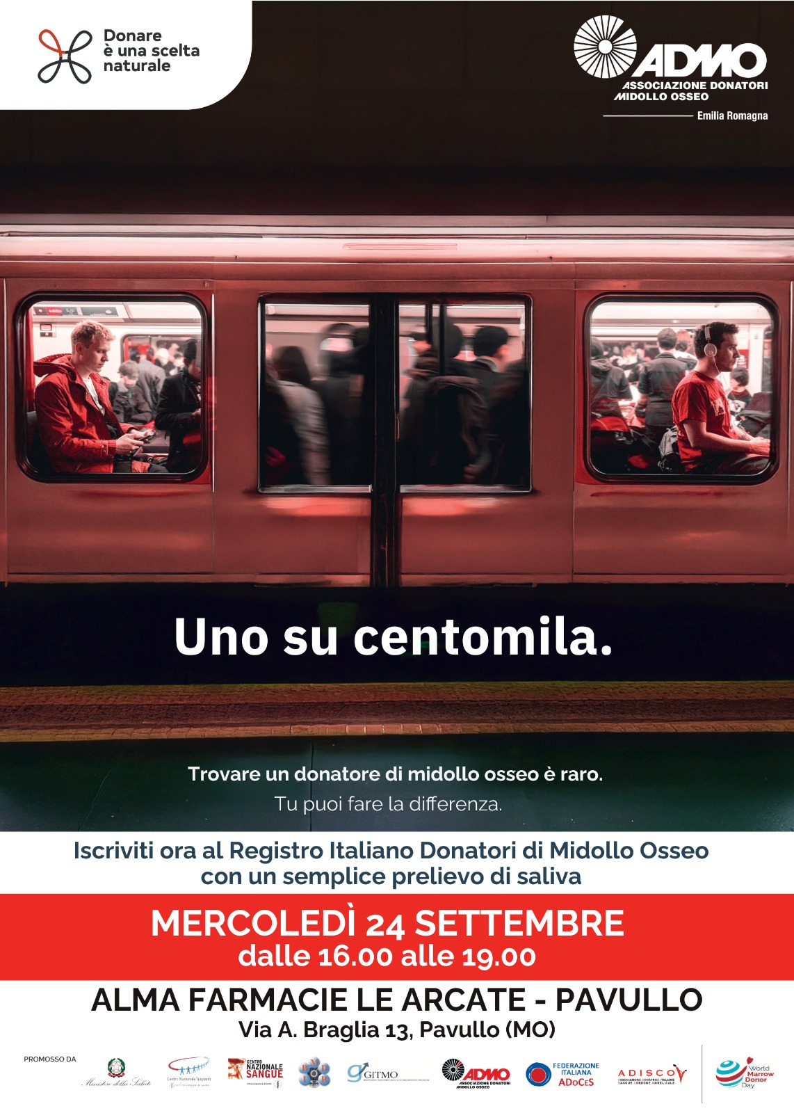 Mercoledì 24 settembre, dalle 16.00 alle 19.00 sarà possibile iscriversi al Registro Donatori di Midollo Osseo con un semplice prelievo di saliva presso Alma Farmacie Le Arcate a Pavullo!