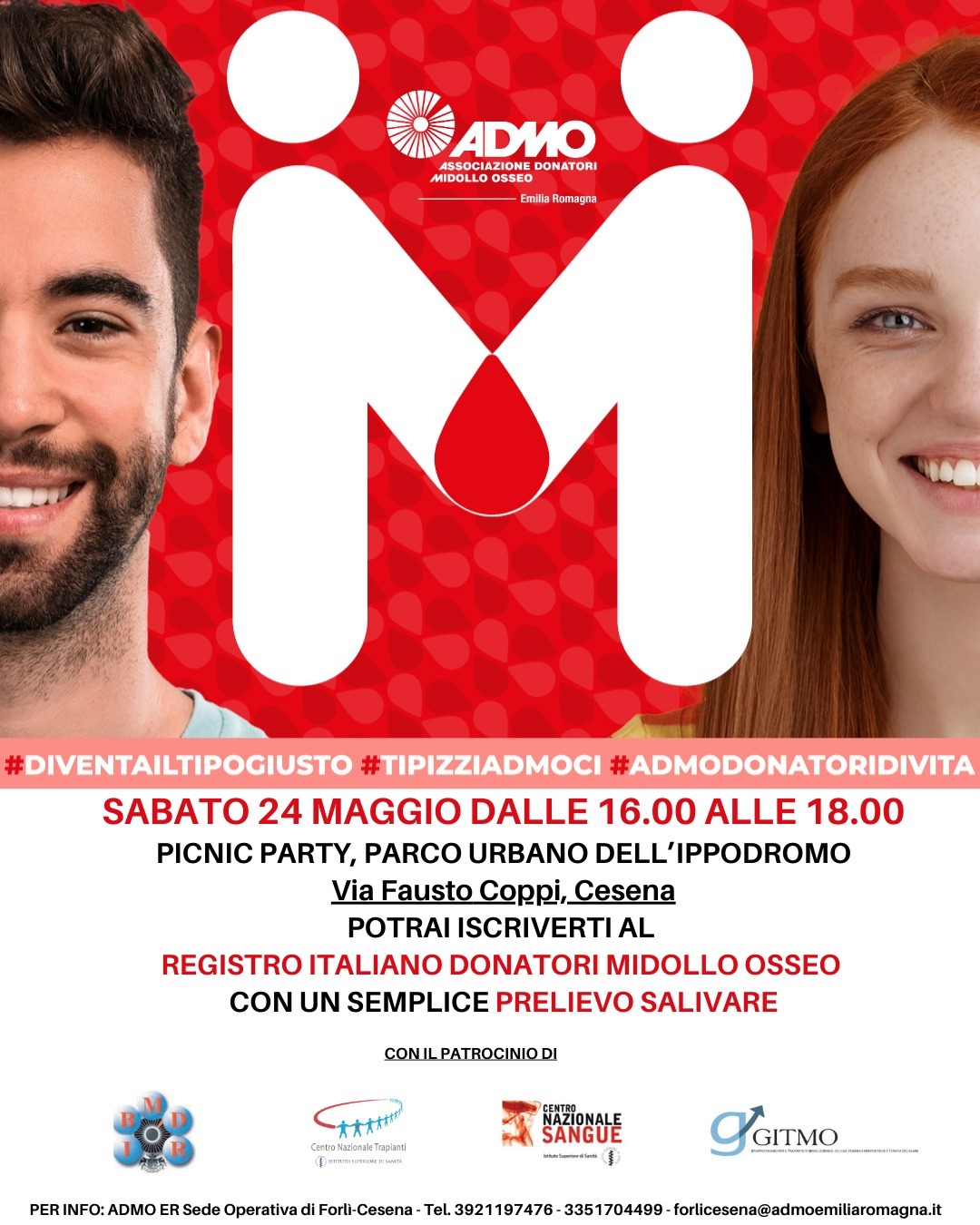 ADMO ti aspetta a Forlì il 10 maggio per la tipizzazione! Un’occasione importante per iscriversi al Registro Italiano Donatori Midollo Osseo con un semplice prelievo salivare. L’evento si terrà presso la Farmacia Comunale Punta di Ferro dalle 14:30 alle 17:30. Un piccolo gesto può salvare una vita.